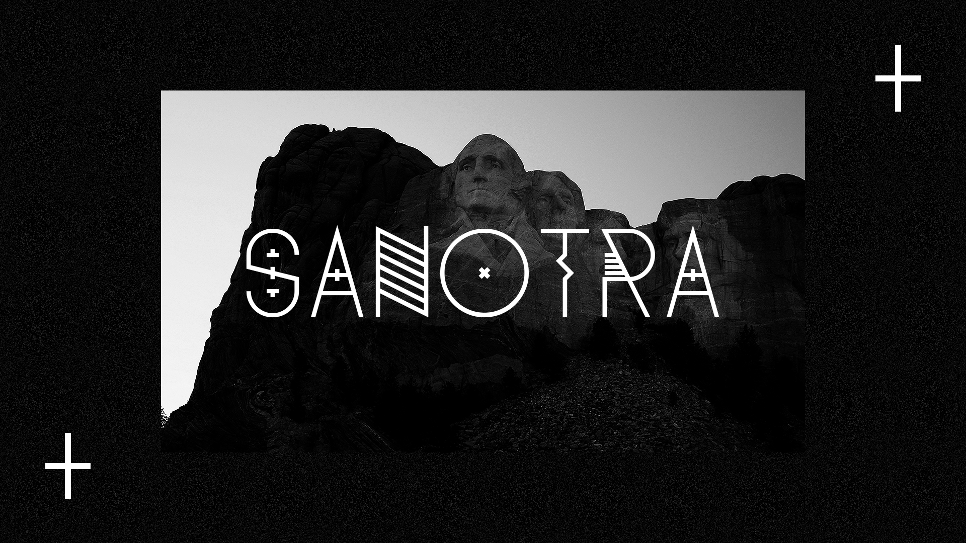 Sanotra is a themed variation on traditional typography, featuring slashes and tribal forms across upper case lettering. It takes inspiration from and pays homage to the indigenous people of North America, expressing characters that are interspersed with angled and dynamic forms.