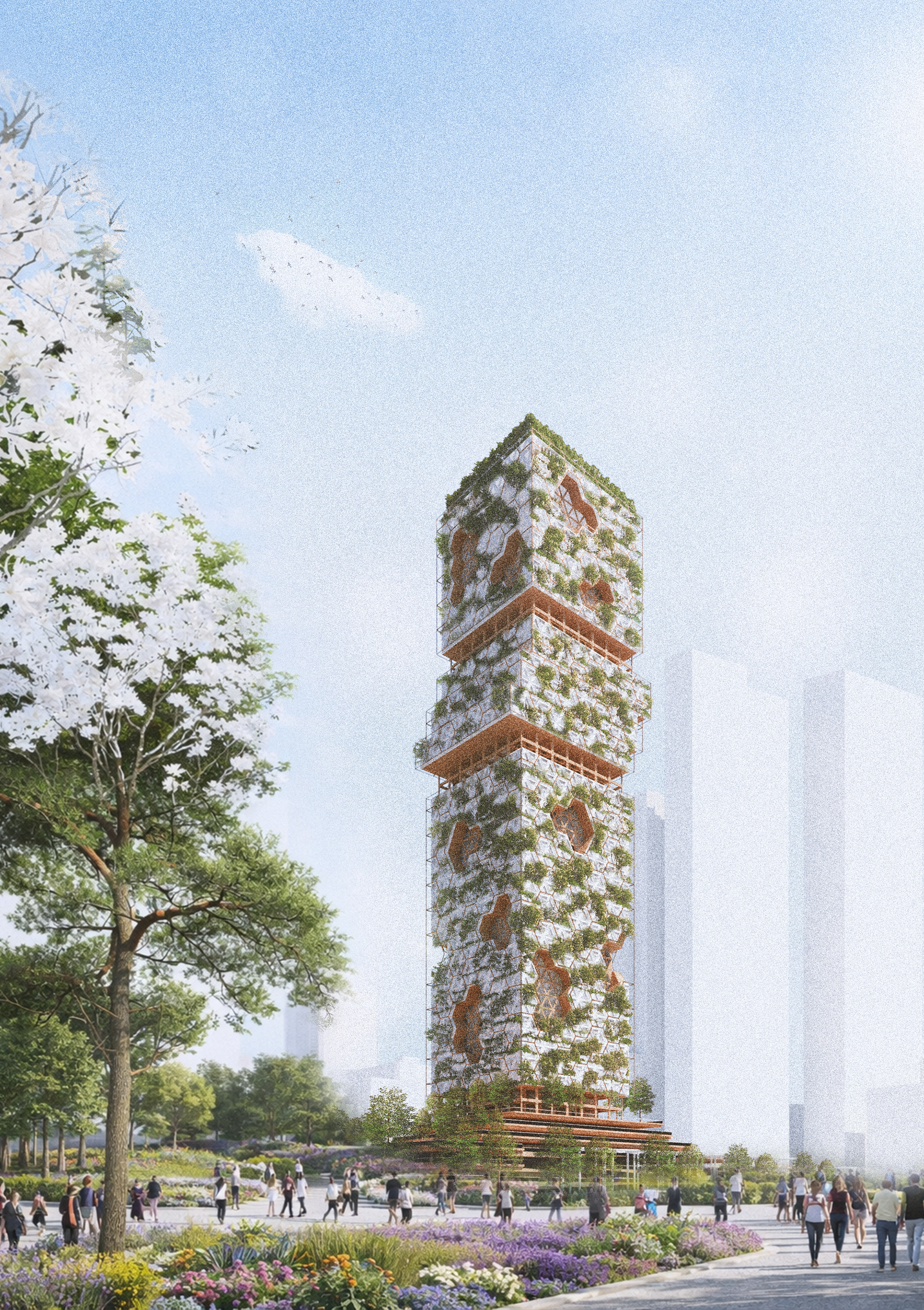 Hybrid Vertical Park is located in a proposed car free city core, where vehicular access is restricted and various activities such as sports, playgrounds, yoga, lounging, food and drink, agriculture, exhibitions + more are amplified — enabling the street to be prioritised for people and cyclists. The Green Loop acts as an ‘air conditioner’ to counter C02 emissions — with planting and greenery introducing a sustainable and eco-environment. These qualities are lifted into the vertical realm and produce a hybrid symbiosis in both the horizontal and vertical city. The project explores beyond the contemporary skyscraper, testing the possibilities of future hybrid typologies that translate the horizontal urban qualities of the city into vertical anomalies. In our world, alternative typologies serve to accommodate the varying and changing needs of a society where the function of an office building is not only restricted to working, but, rather provides a hybrid typology in lieu with unpredictable future conditions — and therefore adapting to human needs first and corporate world second.